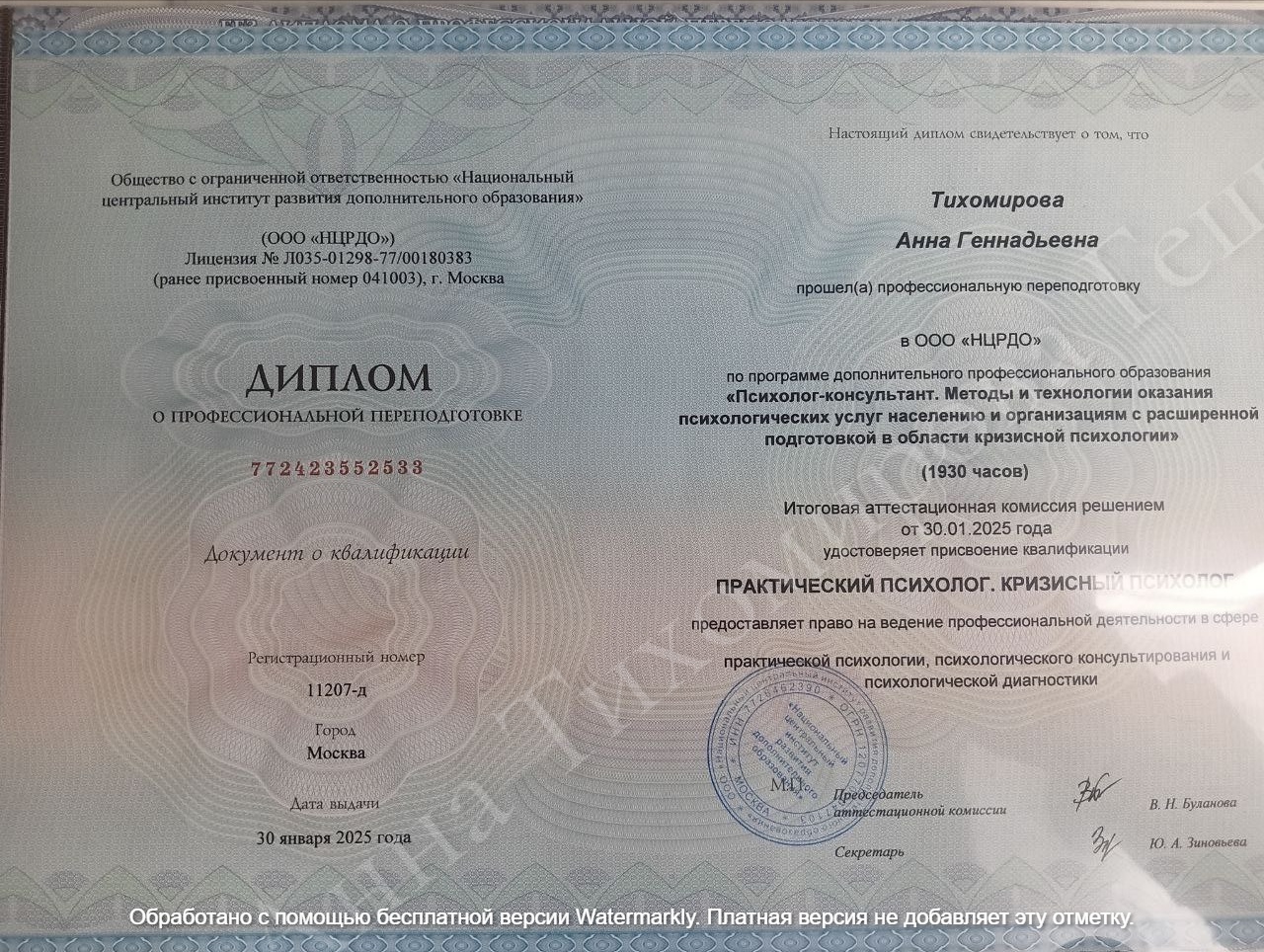 Для меня ценно быть подлинной рядом с вами, создавая безопасное и поддерживающее пространство для исследования ваших переживаний. Моя задача как терапевта – помочь вам осознать, как прошлый опыт и текущая ситуация влияют на вашу жизнь, и увидеть новые возможности для выбора, который сделает вас более счастливым и реализованным. Я убеждена, что часто нам всем не хватает принятия и поддержки, чтобы почувствовать удовлетворение от жизни и раскрыть свой потенциал.