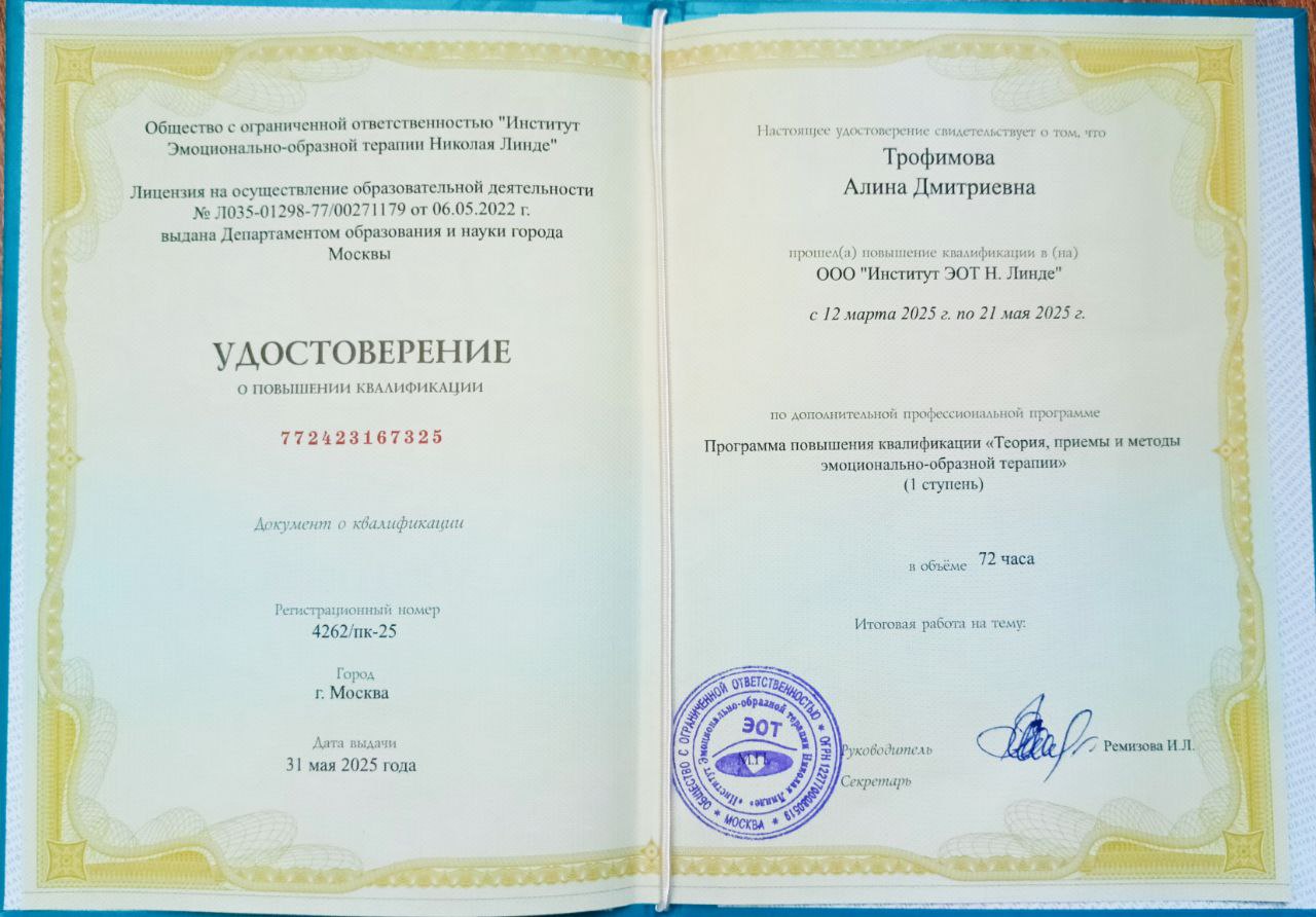 Например, вы приходите с запросом — тревога, панические атаки, психосоматика, личные трудности. Психолог мягко помогает погрузиться в ощущение тела и представить внутренние образы, предлагает "поговорить" с этим образом, понять его причину и изменить его, чтобы эмоция перестала давить. После этого вы начинаете чувствовать, как образ меняется, и вместе с ним — ваше состояние. Это как переписать сценарий внутреннего конфликта.
