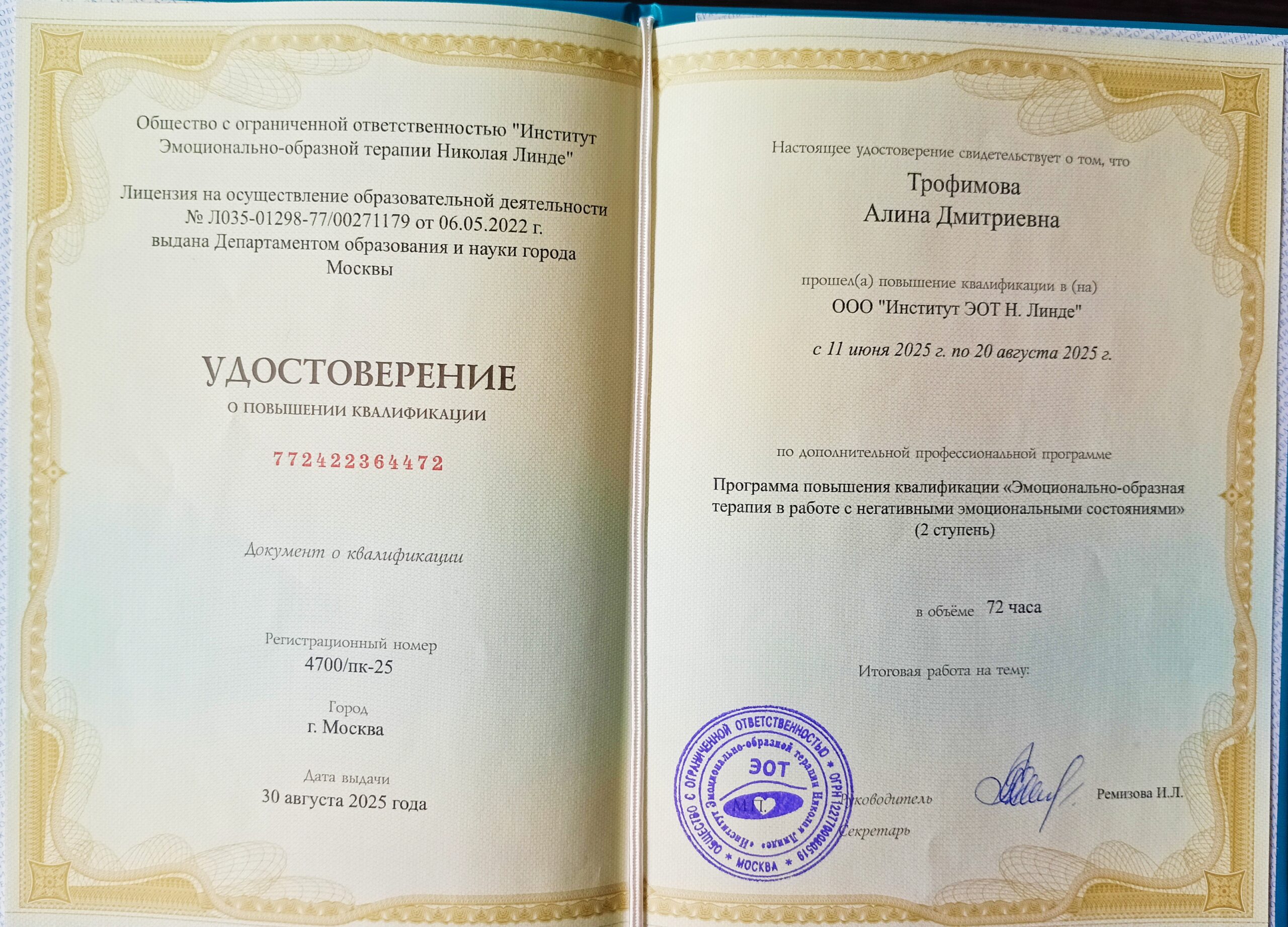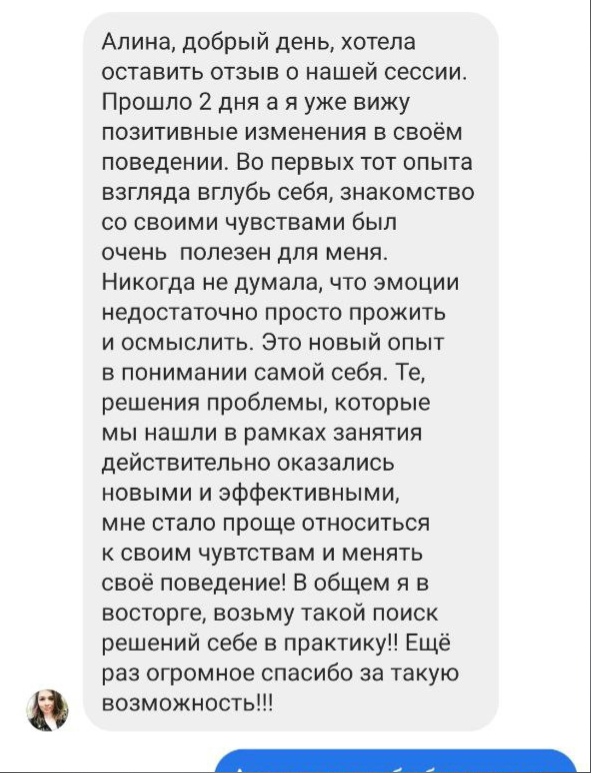 Работаю в Эмоционально-образном подходе. Это мягкий, краткосрочный метод для работы с эмоциями через образы. Он помогает глубоко, эффективно и зачастую достаточно быстро решить личные проблемы. Комбинирую с коучингом для конкретных шагов. Работаю с выгоранием, тревожностью и любыми другими эмоциональными переживаниями. Помогаю в личных и профессиональных кризисах.