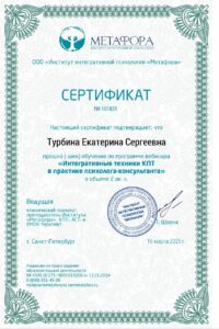 Психотерапевтический метод:EMDR (ДПДГ) Арт-терапия Гештальт-терапия Когнитивно-поведенческая психотерапия (КПТ)