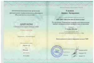 Подтверждённые дипломы по психологии:диплом о высшем образовании