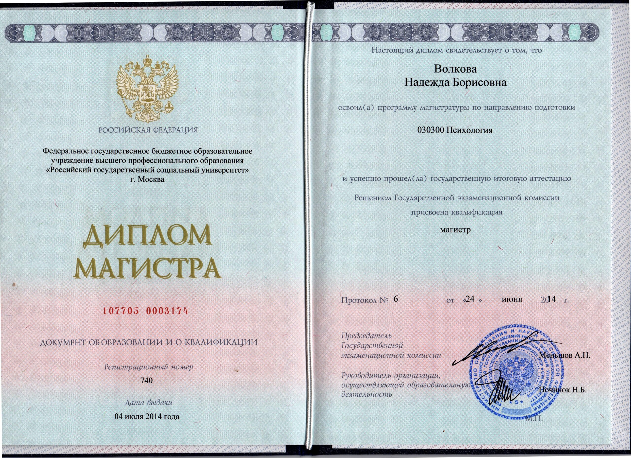 Российский Государственный Социальный университет Специальность: Психолог Квалификация: Магистр 030309 Психология