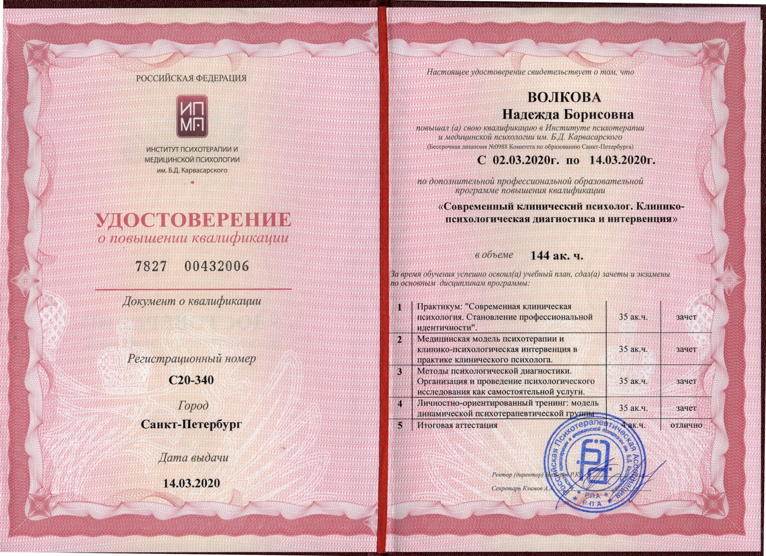 нститут клинической психологии им Б Д Карвосарского Современный клинический психолог Клинико-психологическая диагностика и интервенция 144 часа