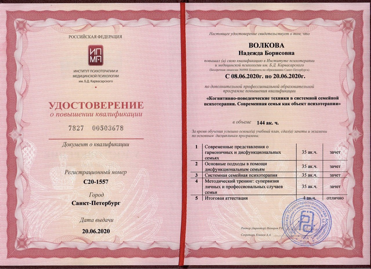 Институт психотерапии и медицинской психологии им. Карвасарского КПТ в системной семейной психотерапии 144 часа