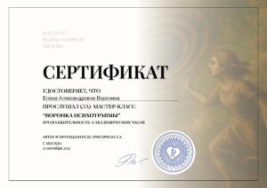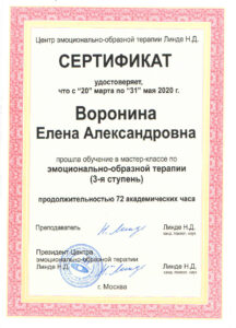 Я сама начинающий психолог и в настоящее время прохожу обучение на курсе эмоционально-образной терапии. К Елене я обратилась с запросом о личной терапии в данной модальности.