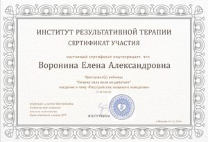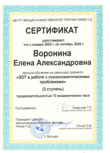 Сегодня хочу оставить отзыв о психологе - Ворониной Елене Александровне. В терапии нахожусь 2 месяца и продолжаю работать. Основной метод - это ЭОТ, т.е. работа с образами. На консультациях чувствую себя комфортно, Елена Александровна, как свой человек), можешь рассказать сокровенное и не будешь ждать осуждения. Что мне понравилось, это заинтересованность специалиста разобраться в ситуации, а не просидеть время. Более того, если была необходимость немного задержаться, мы всегда заканчивали терапию не с ориентиром на время, а с задачей завершить благополучно сеанс. Спасибо.