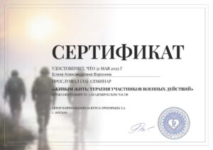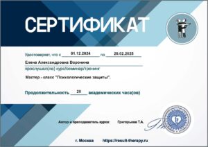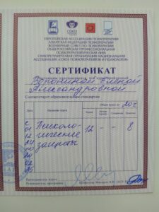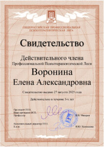 Здравствуйте! Я магистр психологических наук, клинический психолог, семейный психолог, нейропсихолог, травматерапевт, педагог-психолог. В настоящем являюсь Действительным Членом и Сертифицированным Консультаном Профессиональной Психотерапевтической Лиги.