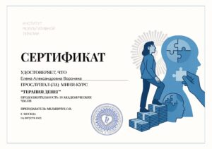 Я еще остаюсь в терапии у Елены, но уже сейчас чувствую позитивные изменения в своем психологическом состоянии и отношении ко многим жизненным ситуациям. Искренне благодарю Елену за качественную и добросовестную работу!