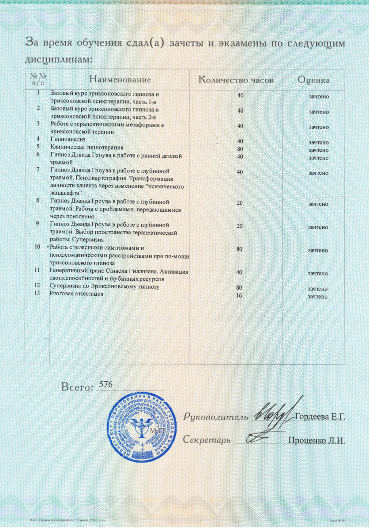 Применяю эриксоновский гипноз и генеративный коучинг, что расширяет возможности работы с внутренними ресурсами и бессознательным.