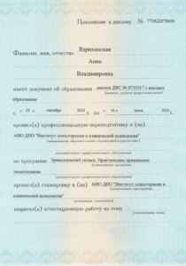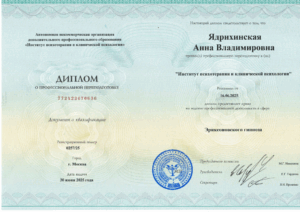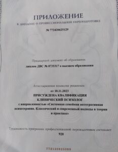 Подтверждённые дипломы по психологии:диплом о переподготовке (>1000 часов)