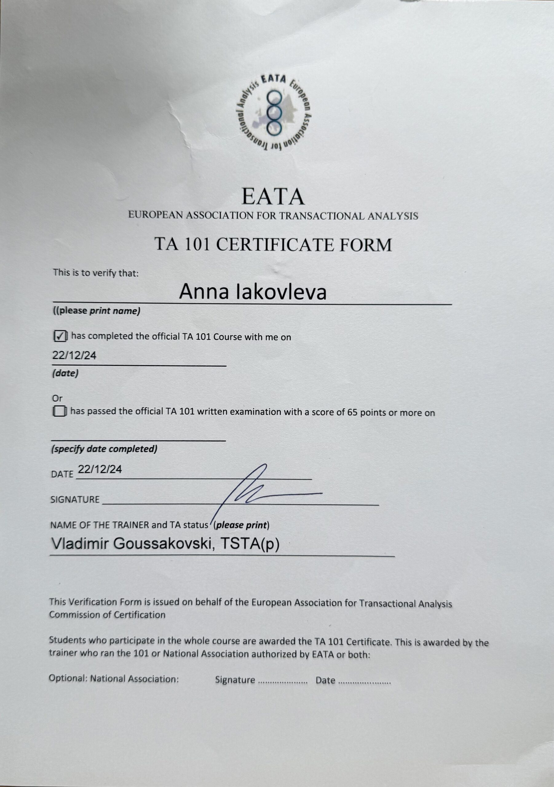 Прохожу длительную личную и групповую терапию. Регулярно обучаюсь, прохожу супервизии и продолжаю развиваться в профессии.