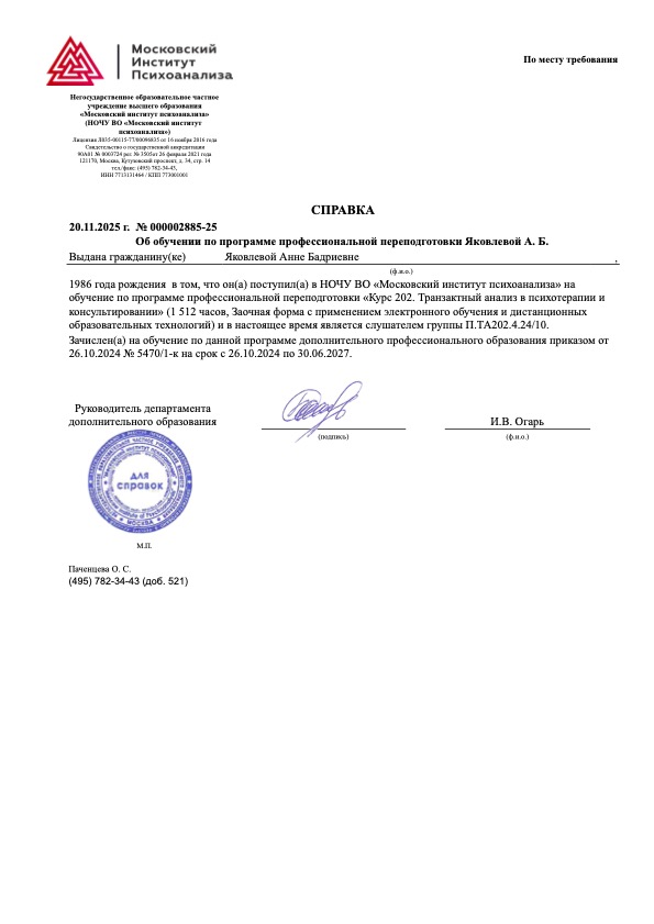 Для меня важно опираться на научный подход, профессиональную этику — это делает терапию надёжной, бережной и эффективной.