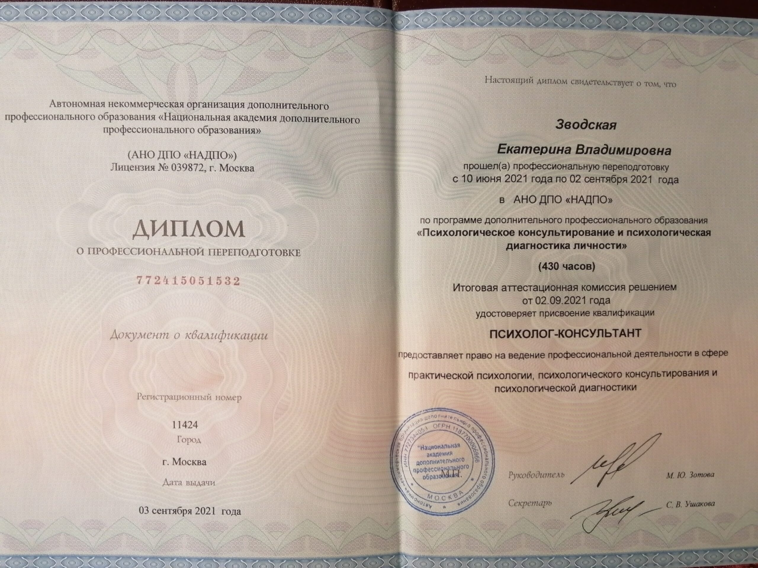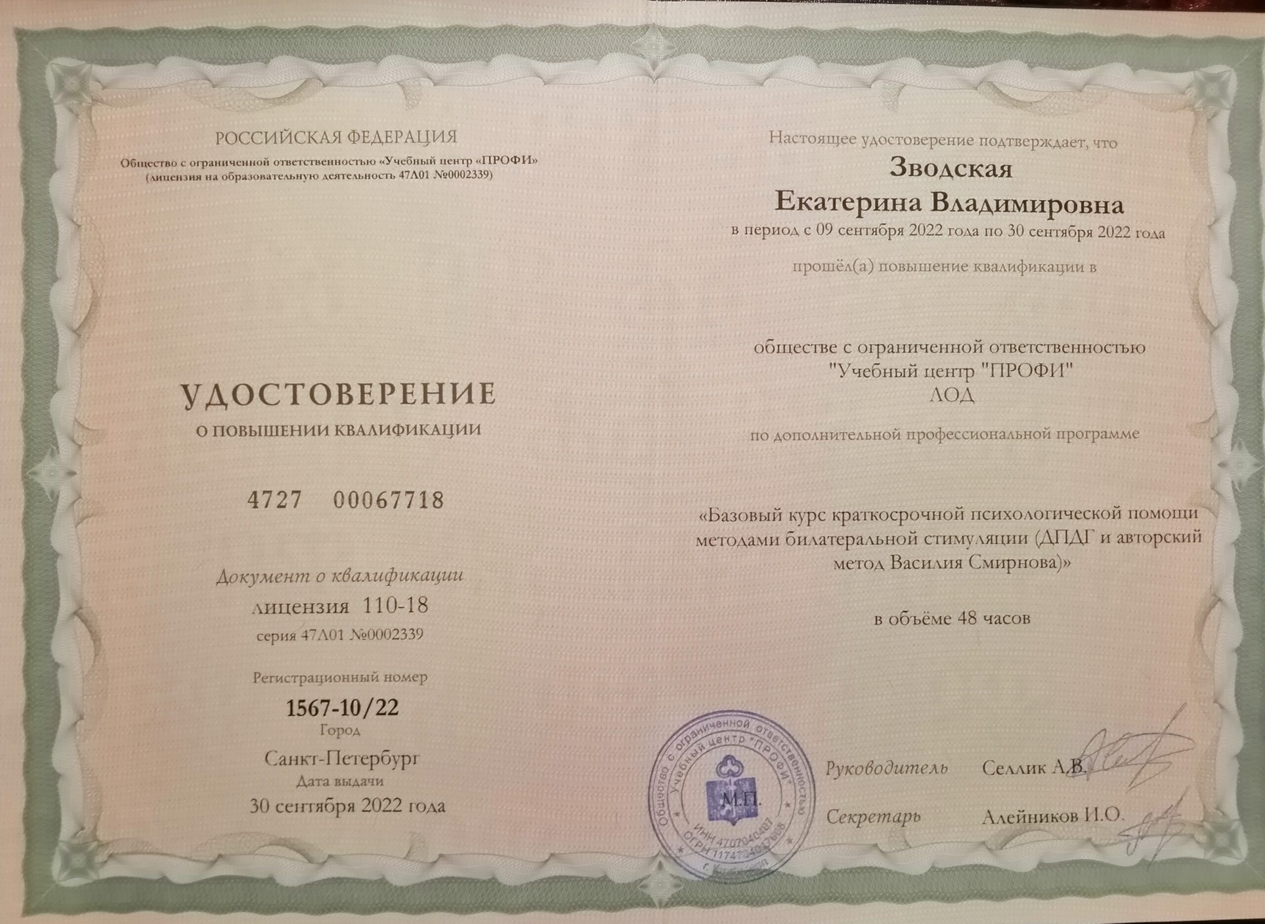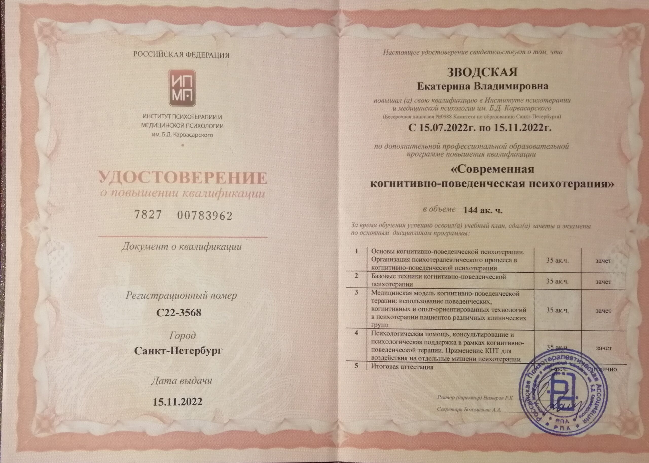 Принимает очно (город приёма):Очный прием в г. Санкт-Петербурге